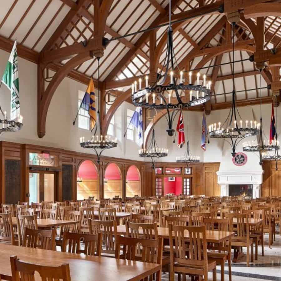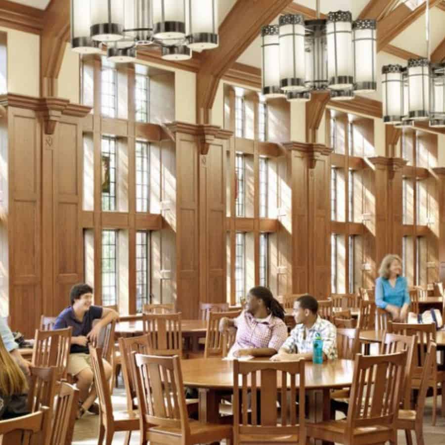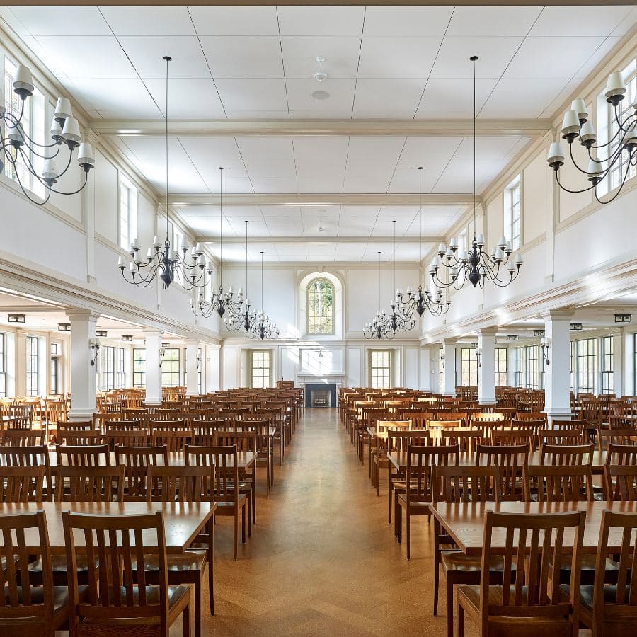 A private school dining hall is both a gathering place and a statement of community. Chairs must balance warmth and endurance. Armchairs can mark faculty or head tables; side chairs fill larger halls. Matching wood finishes across tables and chairs creates a harmonious ambiance throughout the space.