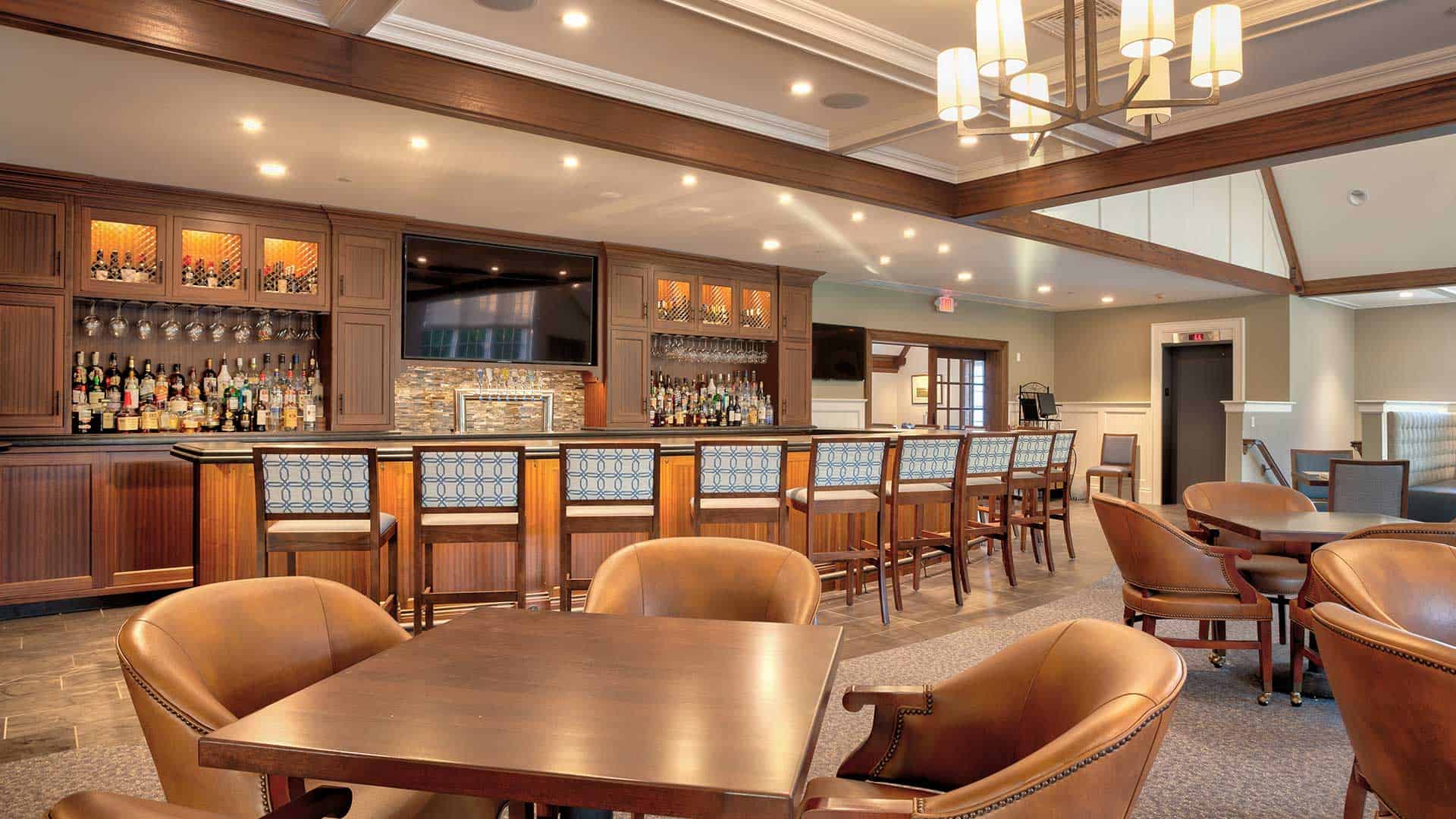 Eustis Chair typically manufactures wood stacking chairs for several country clubs undergoing renovation each year. Our country club clients love that our chairs last so long. In fact, we guarantee it. With Eustis Chair products, they are able to devote more of their budget to the rest of the club instead of having to pay to replace low-quality chairs every 3-5 chairs. One of our favorite country club projects was with Longmeadow Country Club. We manufactured over 200 custom chairs for this renovation. Longmeadow ordered Council Room side and armchairs as well as Jenkins bar stools to go in the dining areas.